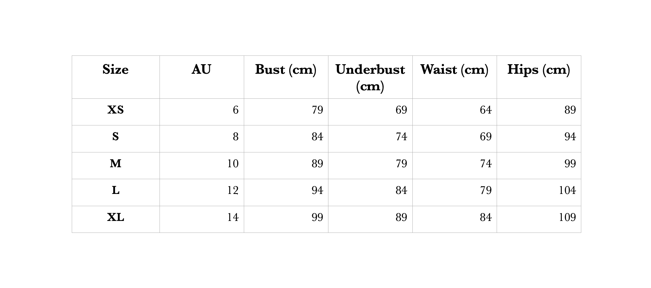 - Underbust: measure around your ribcage, just below your bust